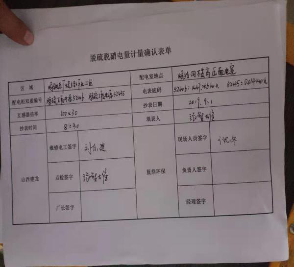 9月1日上午8:30,山西建龍198、265、360燒結(jié)脫硫系統(tǒng)準(zhǔn)時(shí)抄表計(jì)量,轉(zhuǎn)入計(jì)價(jià)結(jié)算。